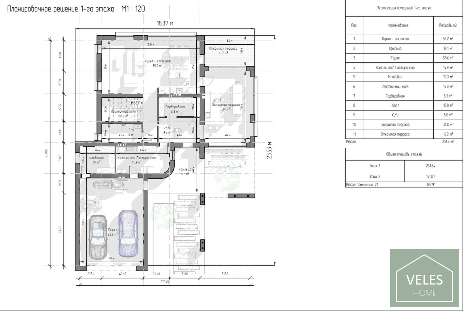 Общая площадь:  392 м2